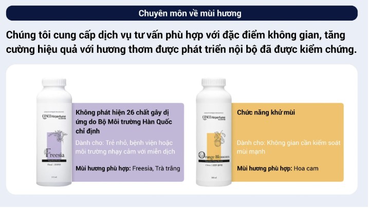 CESCO Airperfume cung cấp giải pháp tư vấn mùi hương được thiết kế phù hợp với từng ngành nghề và yêu cầu không gian cụ thể.