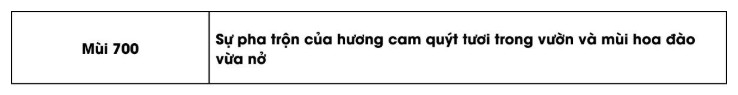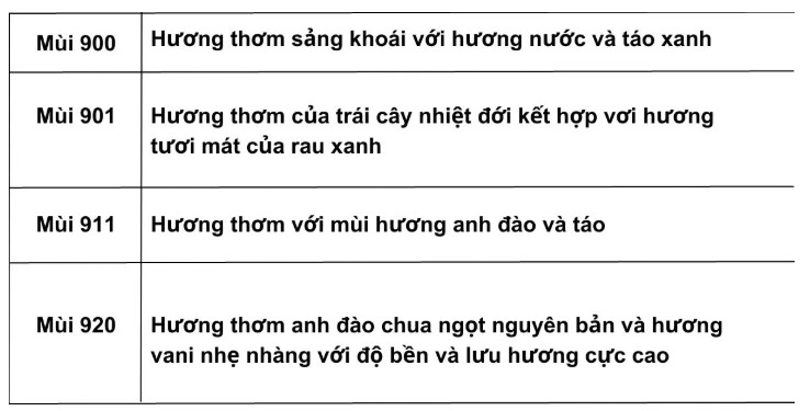 *Hương thơm thân thiện với môi trường được chứng nhận: Prigenic, Sweet, Floral, Fresh Garden
