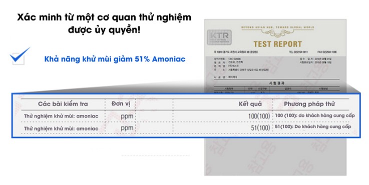 - Khử đến 53% mùi nước tiểu, thuốc lá