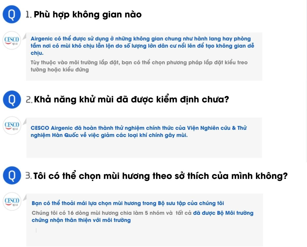 Q&A về máy khử mùi tạo hương thơm CESCO AIRGENIC
